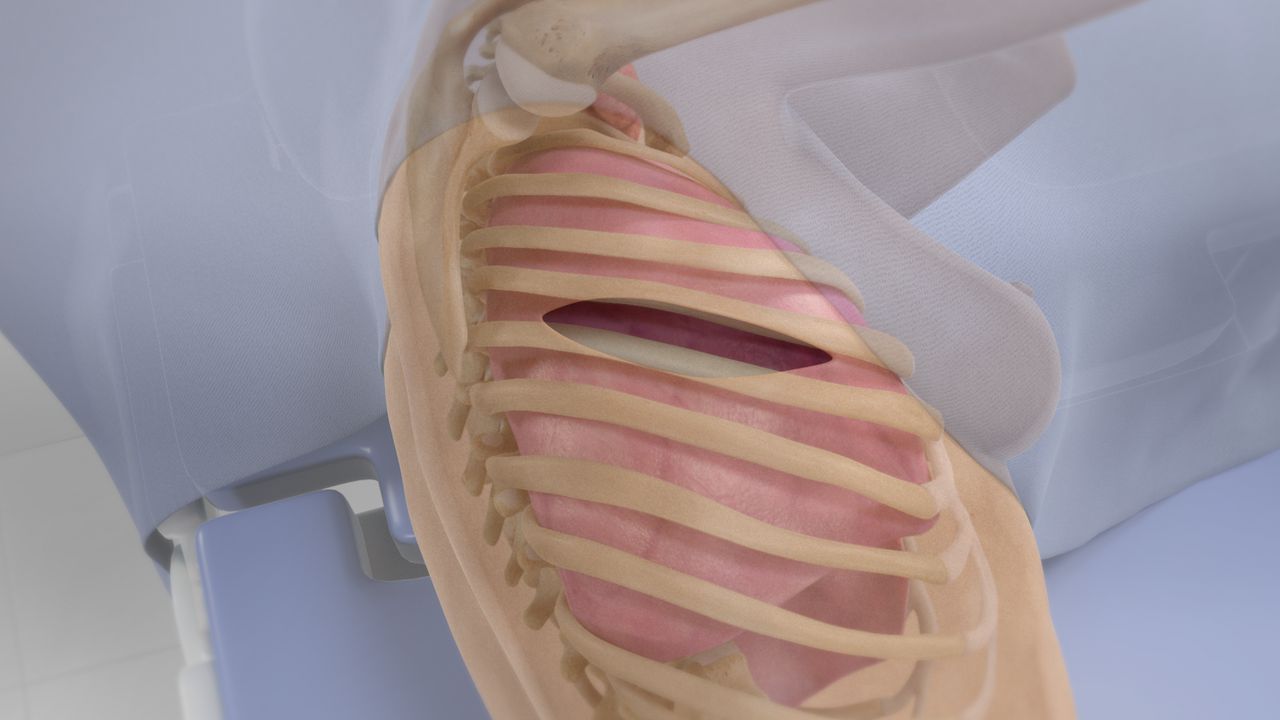 The surgeon makes a long incision in your side. It goes from the front of your chest wall, beneath your armpit and around to your back. It goes between two ribs, separating them. In some cases, a rib may need to be removed. After your procedure is done, one or more chest tubes are placed. These help drain air or fluid from your chest cavity. Finally, your incision is closed.