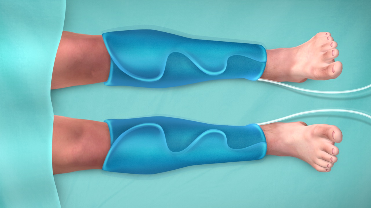 You may benefit from a compression device that inflates and deflates to help circulate the blood in your legs. The device has leggings connected to an air compressor. At regular intervals, the compressor inflates the leggings to squeeze your legs.