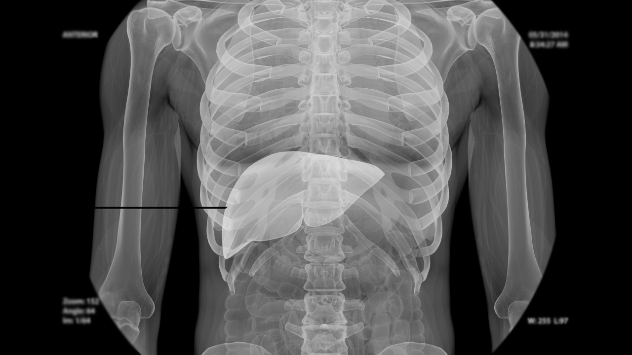 The doctor carefully inserts the biopsy needle through the skin and down into the liver. The doctor may guide the needle with the help of an x-ray device called a fluoroscope, which shows moving images from within the body. The doctor uses the biopsy needle to quickly collect a sample. If multiple samples are needed, the doctor may make more than one puncture through the skin.