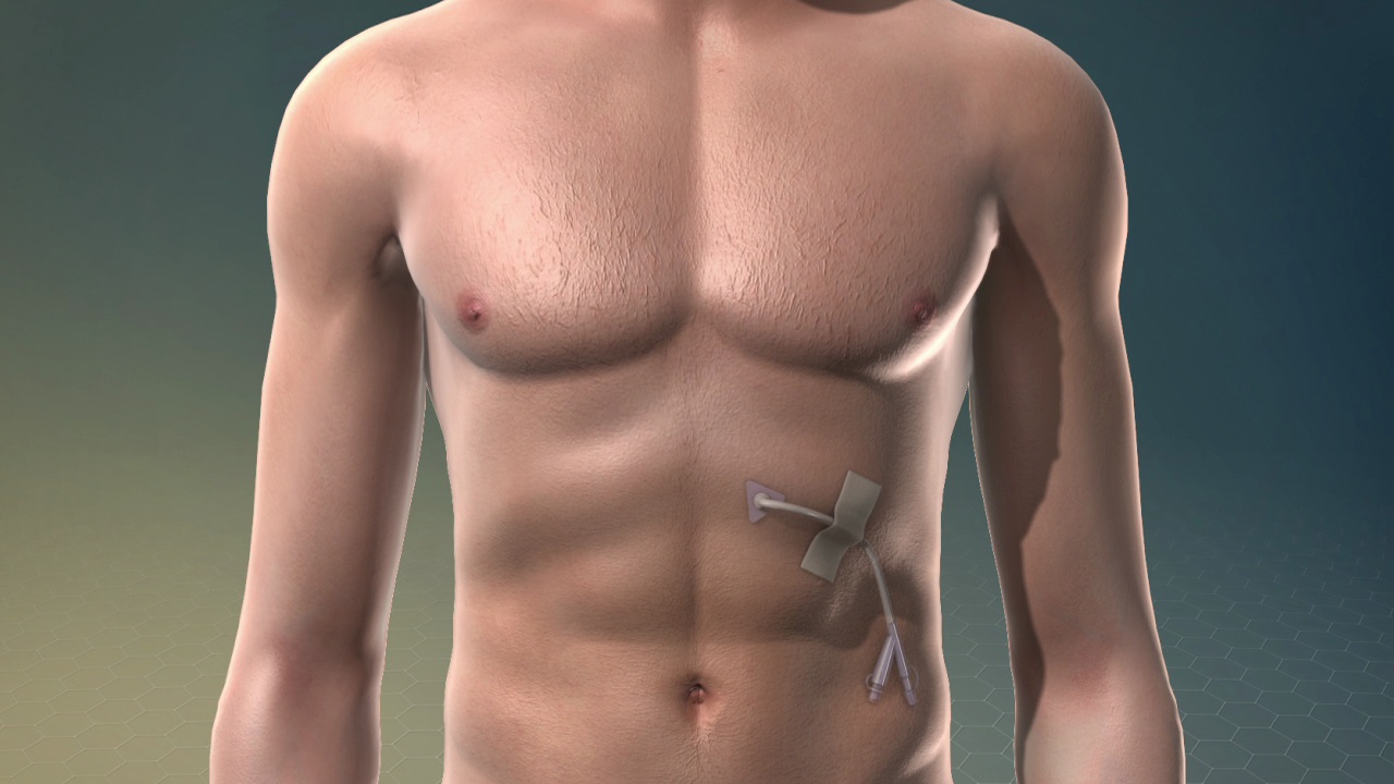 A tube called a catheter is placed through this incision and into your stomach. A guide wire is pushed through the catheter and up through a channel in the endoscope. The catheter is removed. Your doctor attaches the PEG tube to the guide wire and pulls it down through the endoscope and into your stomach. The end of the PEG tube is carefully pulled out through the opening.