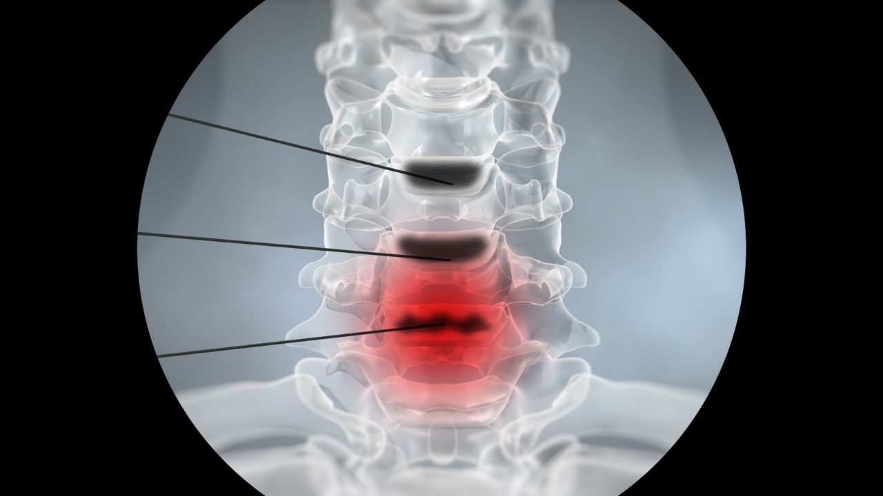This procedure, also called a "discogram," helps your doctor find painful spinal discs. It can show the source of pain in your neck. To see how it works, let's watch a discography done in the cervical spine.