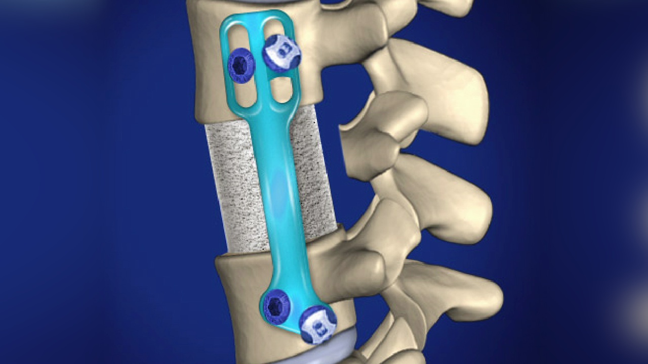 A piece of metal called a Zplate is placed onto the two bolts, bridging the vertebrae levels above and below the bone graft.