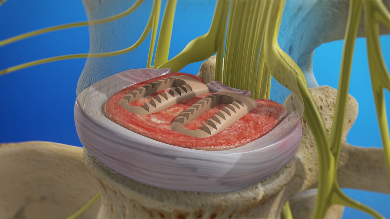 The surgeon carefully clears away your damaged disc material. A portion of the disc wall is left in place. It will help contain the graft material.