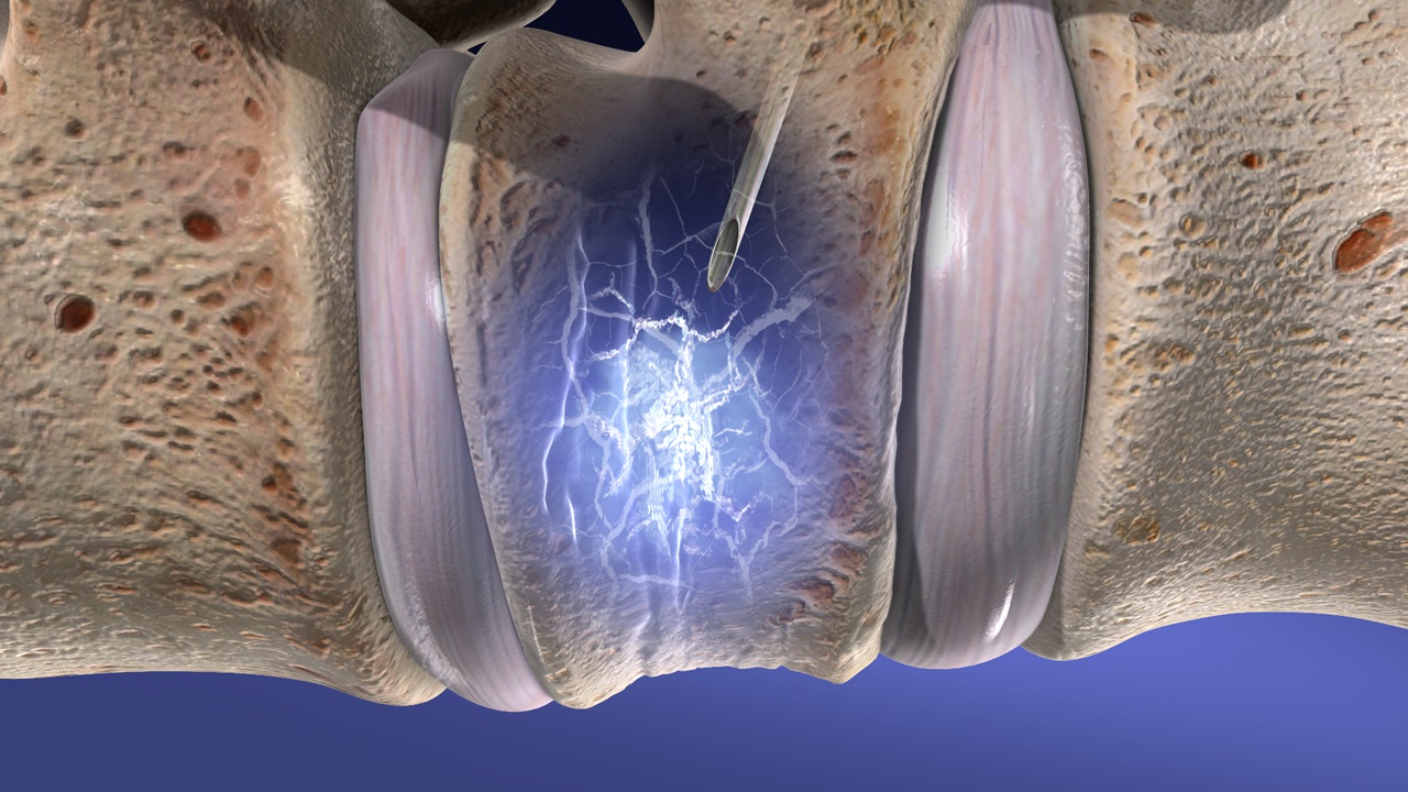 In preparation for the procedure, you lie face down. You may be given medicine to make you feel relaxed. You may be anesthetized. The physician inserts a needle through the skin of your back. An x-ray device called a "fluoroscope" shows a video image of the needle's position. This helps the physician guide the needle into the body of your collapsed vertebra.