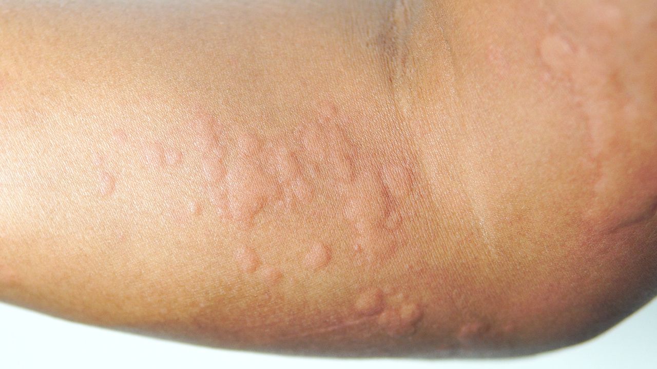 These are red, raised areas that form on the skin. They're often itchy. Hives can range in size from small to large, and they can develop anywhere on your body.