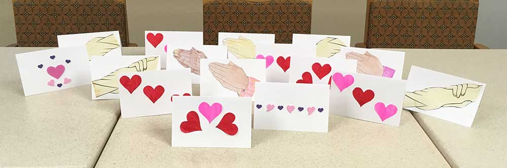 The recipients of the cards will be senior adults in the Houston area impacted by the historic floods. Clara Wilkinson, activities coordinator for Health Center at Live Oak, said residents were delighted to make the cards, pieces of folded white cardstock decorated in a variety of ways to symbolize a different message.