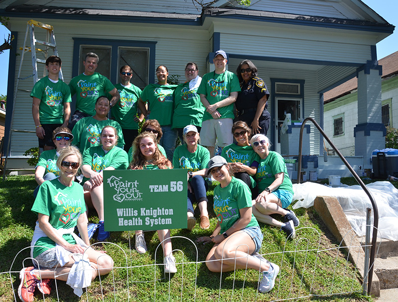 More than 140 Willis-Knighton employees, with the help from a few family members, gave up a Saturday to participate in the Paint Your Heart Out event in Shreveport. They were assigned houses in the Queensborough neighborhood by the Shreveport Department of Community Development, which implemented the program 27 years ago.
