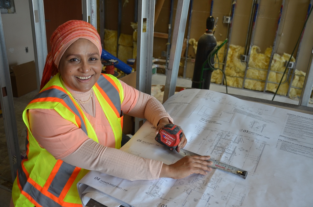 Saimah Taluker, MD, of WK OB-GYN Concepts, looks over plans for the renovation of Willis-Knighton’s labor and delivery unit.