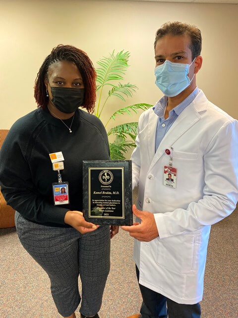 Kamel Brakta, MD, general surgeon at WK Robotic & Laparoscopic Surgery, has been named Preceptor of the Year by third-year medical students from New York Institute of Technology College of Osteopathic Medicine in Jonesboro, Ark. The award was presented by Laquilla Jones, regional administrator for New York Institute of Technology College of Osteopathic Medicine (NYITCOM).
